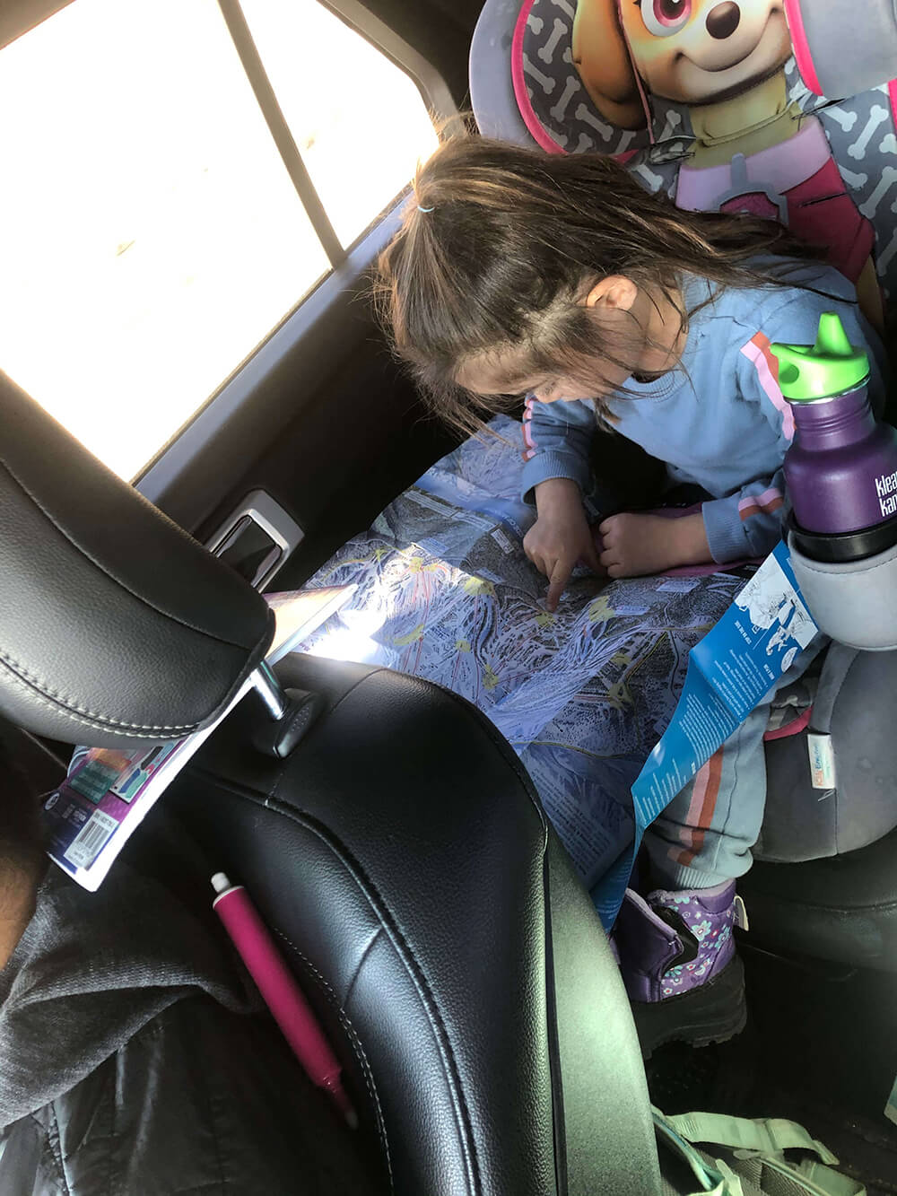 On to the trip…we’re in Orange County, CA, so it was a quick-ish 5 ½ hour drive. I packed 1,000 snacks, 2 coloring books, 1 set of crayons and 2 sticker books and karaoked to classic California road trip music: the Eagles. Our friends met us in Mammoth with their two kids ages 7 and 4 and split the cost of our rented 3 bedroom, 2 bath condo. We had to cancel our condo reservation about 2 weeks before the trip because California banned non-essential travel. But we still booked off-line with the same owner and paid her through Venmo.