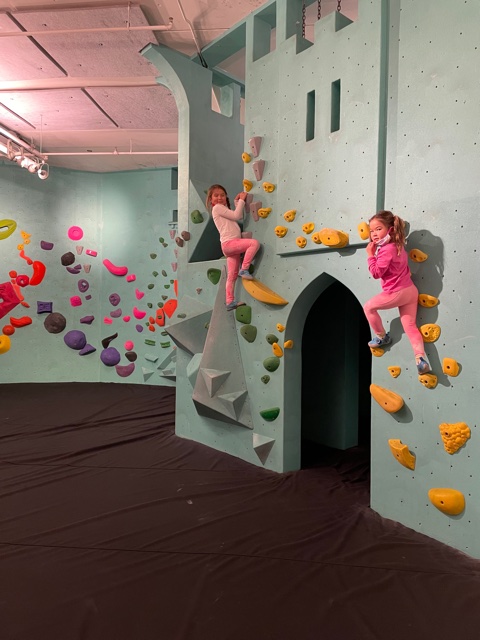 On Saturday, knowing it was going to rain most of the day, we decided to book The Bouldering Project. It’s an AWESOME rock climbing gymwith two locations. We went to the one in the Fremont neighborhood of Seattle. www.seattleboulderingproject.com. They sell memberships, but guests can purchase passes ahead of time during Covid. You can pre-book main floor climbing, lower floor, upper walls and fitness and yoga classes. The kids’ climbing sections are on the lower floor so that’s what I reserved. It’s a big warehouse-looking building with ample parking. Everything was provided including shoes and you can stay for an hour ½. The girls loved it. Rock climbing is tough! There are different levels, marked by different colors. Even the easiest was hard for this non-climber. The floors are cushioned like a gymnastics’ floor so falling is not an issue. No ropes: free solo. On our way out, we stopped to watch some of the “real” climbers hanging from hand holds on the main floor. It was so impressive. The girls were mesmerized. Great family fun and a good workout too.