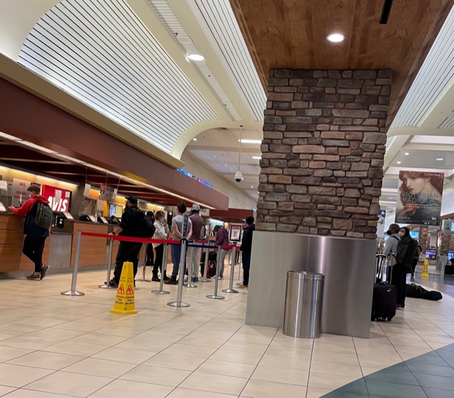 The stress level went up exponentially though when we arrived at 8:30PM into Reno/Tahoe, got our luggage and went to pick up the rental car. What we should have done is divide and conquer: Steve gets bags; I get in rental car line. It is a super small airport so baggage claim and the rental car pick up area are next to each other. Unfortunately, we did not do that. There was one person on staff at Budget…and apparently, no one rents from the other car companies! The line was insane. We waited for over an hour to get our car.