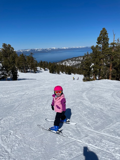 The Village gondola takes you to the Nevada side where Tamarack Express will then take you up to the skiable part of the mountain. If you choose to stay in Nevada, beware of the flat runs. You can’t tell from the ski maps which runs actually have pitch and which will leave you pulling your kids by your ski poles and burning out the muscles of your thighs! Thank God we’re not snowboarders. I heard several of them cursing the mountain as they walked by us carrying their boards.