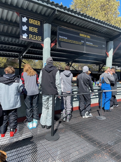 Meals on mountain are OK. Still no indoor dining when we went. I think it’s best to stick to the grilled hamburgers and the bratwurst:  East Peak Lodge on the Nevada side; Steins (brats and beers) and Sky Deck on the California side. I made the mistake of ordering a Caesar salad on Friday for lunch and the lettuce was old, discolored and soggy. Then Steve repeated the mistake on Saturday and had the same experience at a different restaurant. Both salads were pre-packaged and just gross. Stick with the grilled meat!!!