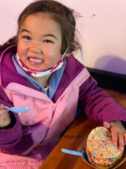 Dinner at the Marriott is our favorite. The in-house restaurant is a Mongolian BBQ called Fire & Ice. www.fire-ice.com. The kids enjoy it because they can build their own bowl full of the foods they like then watch it cooked by an entertaining chef. We could sit indoors here and not freeze while eating. Base Camp Pizza Co is excellent pizza whether you dine in and listen to live music or take out to your hotel room. www.basecamppizzaco.com. Azul Latin Kitchen is also good food with a great outdoor entertainment venue. www.azullatinkitchen.com. For dessert, try The Baked Bear. www.thebakedbear.com. You build your own brownie or cookie ice cream sandwich and the flavors are really creative and fun. The kids LOVED it. All of these restaurants are located in Heavenly Village. The best restaurant we went to for breakfast was “off campus” at The Landing, about a 5 minute drive away from the Marriott. Jimmy’s Restaurant is on the lake and their Sunday brunch was delicious. www.thelandingtahoe.com. It was probably the healthiest meal we had in South Lake Tahoe as well!