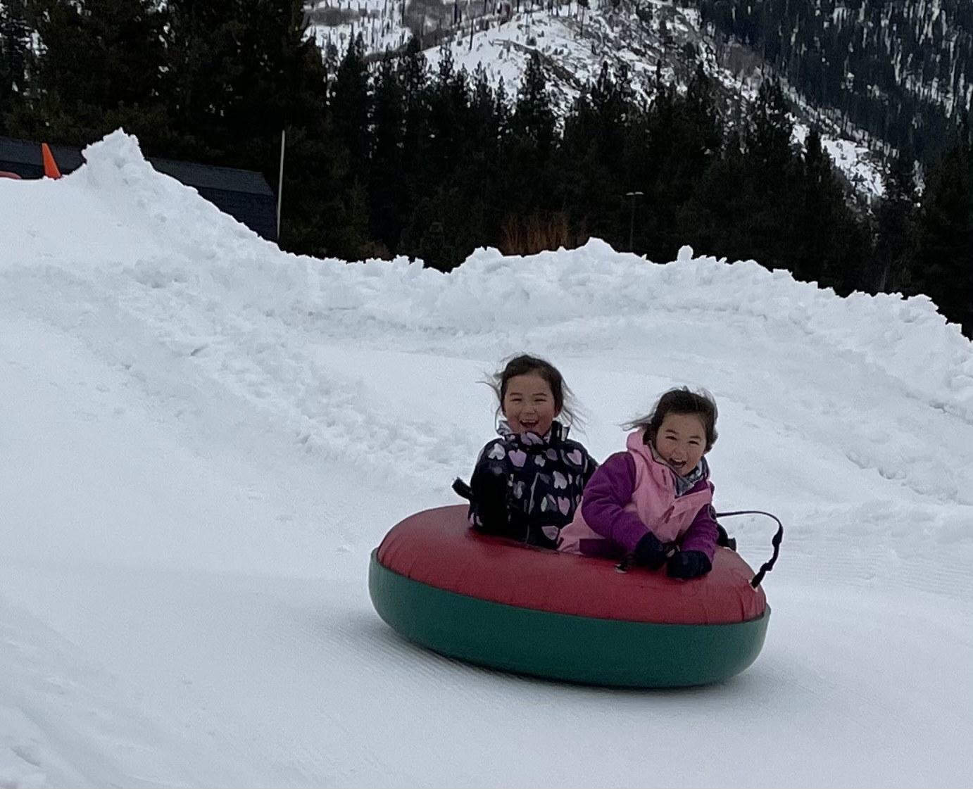 Before we headed back to the airport on Sunday afternoon, we fit in one more activity: tubing. Tahoe Snowmobile Tubing Hill is located next to Mont Bleu Resort and Casino about an 8 minute drive from the Marriott. www.tahoesnowmobile.com. It’s only $40 per tube for one hour and the girls shared one. The operators are really cool…high energy, enthusiastic and happy to send riders into spins and twists down the inner tube hill. I went a couple times down and laughed the whole way. Super fun. There are 4 different hills and you had to pre-book your hour to avoid crowding. We rarely waited in line and even then, only has a couple people in front of us. It was a great way to end a mediocre ski trip.