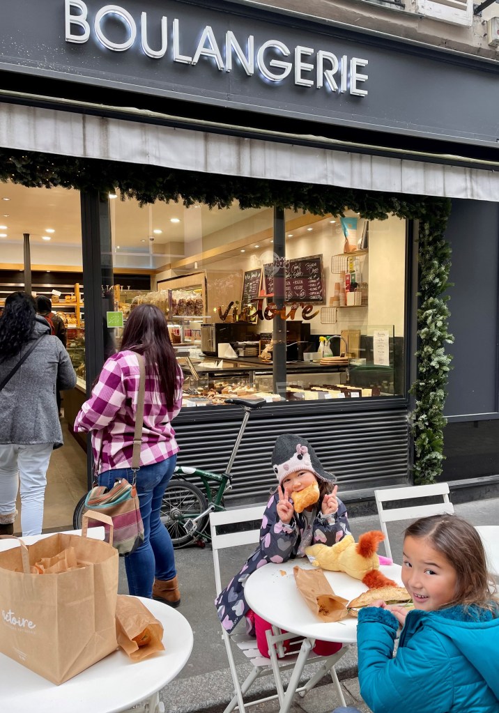 After checking in, we immediately set off exploring and of course ran into a bakery around the corner on Rue Cadet and ordered 2 croissants, a brie sandwich, a curry sandwich and 2 cookies. Then, after finishing and loving all of that, went BACK into the bakery bought 1 more cookie and 2 more croissants! The girls decided they love “Paris food” as much as they hate “Germany food.”