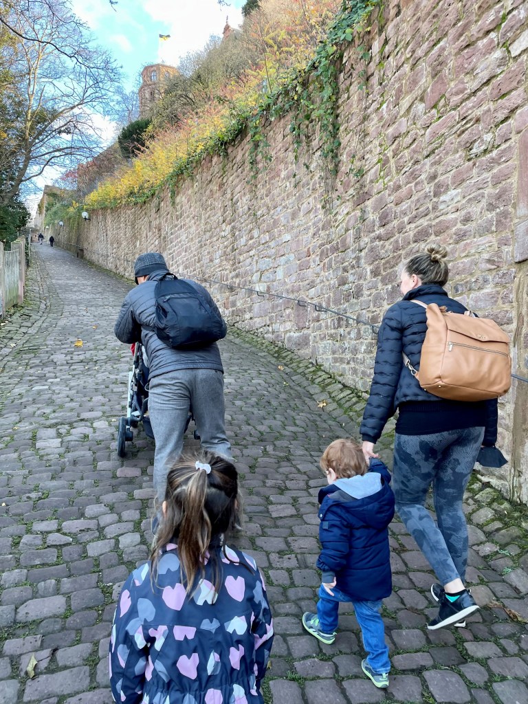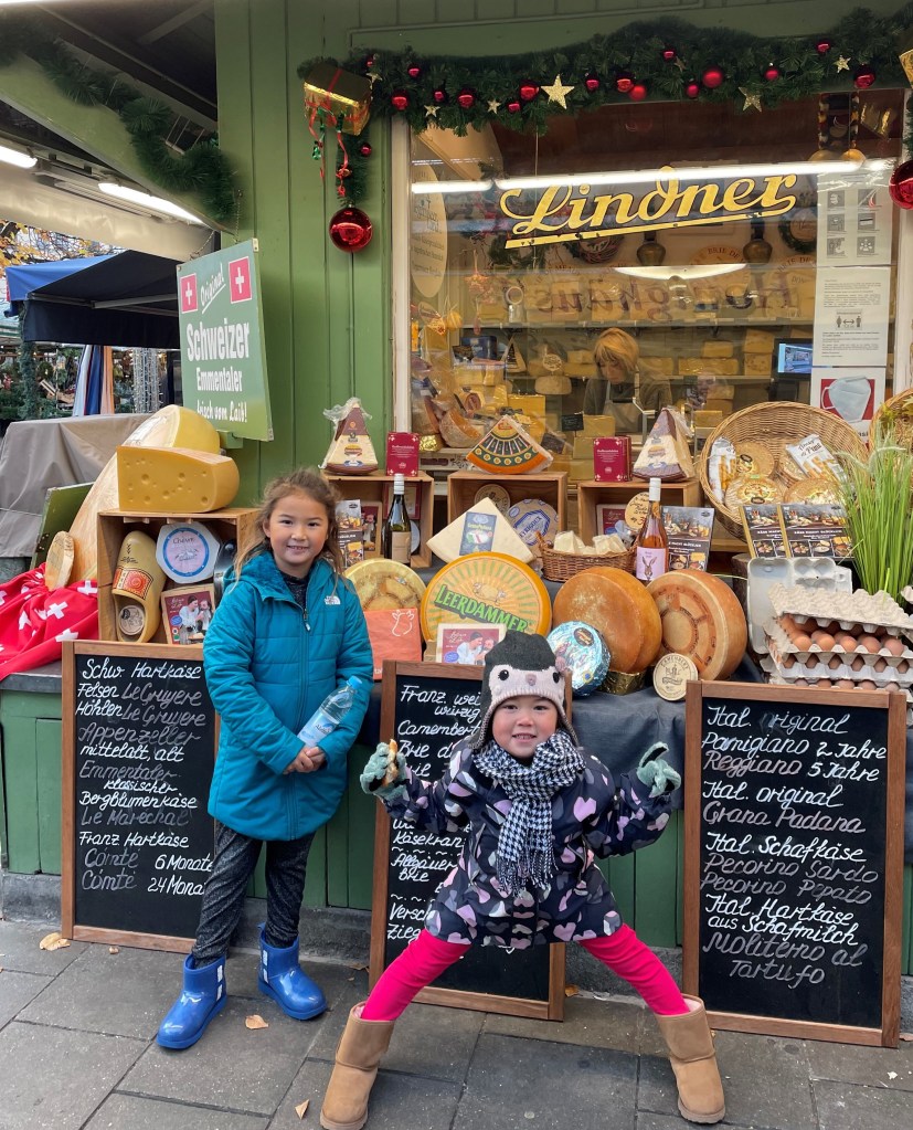 The highlight was the Christmas Market. We ate brats and sauerkraut and cold pretzels and drank gluhwein. There were handcrafted ornaments and music boxes to buy, candles and nativity scenes…so much to see. And, of course, open spaces for the girls to run around and explore. To enter Christmas markets, again, proof of vaccination, negative Covid test or proof of recovery was required.