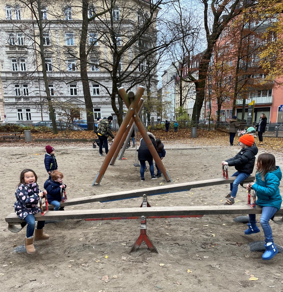 The next day was Saturday and our friends drove from Stuttgart to meet us. We started our day at the Hofbrauhaus listening to the oompah band, then walked to a park near a river and finished at the Viktualienmarkt where we grabbed hummus, Baba ghanoush, cheese and salami to bring back to our hotel room for dinner. They have 3 boys who are 5, 2 and 3 months old and combined with our 5 and 6 year old, our activities of the day were perfectly catered to the kids’ desires. They drove back that evening.