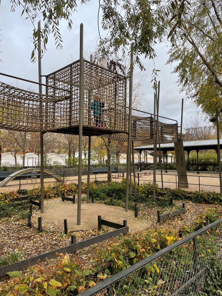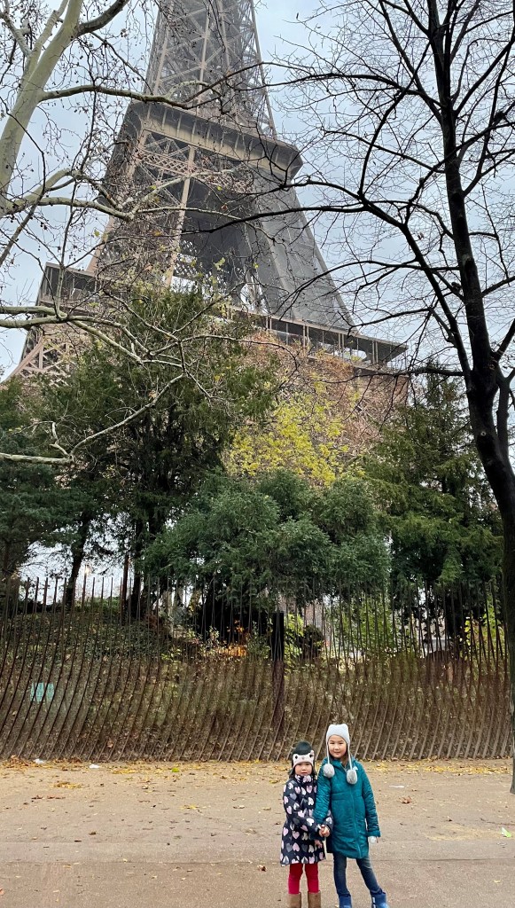 We didn’t enter the Louvre because reservations were required in advance and, frankly, at 5 and 6, I’m pretty sure my daughters wouldn’t have lasted long there. They loved the Tuileries garden though…especially because a Christmas market had been set up AND there was a fabulous park. Yes, still freezing cold. But, we all had warm jackets and layers, and basically kept moving!