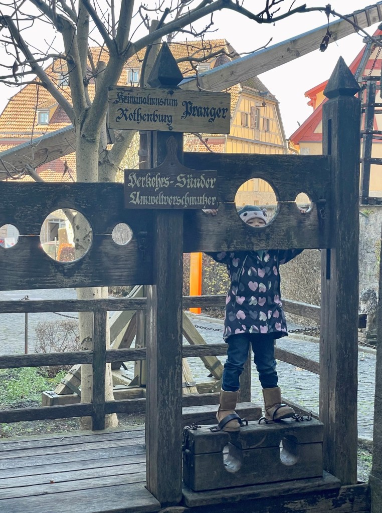 On Sunday morning, we took the DB train (pre-booked and pre-paid on the DBTrain app on my phone) to Stuttgart, where we stayed for 3 nights at our friends’ home on the Army base there. While in Stuttgart, we took day trips to Heidelberg (see the castle and Christmas market) and to Rothenburg (Christmas capital of Bavaria and home to the torture museum, a must see). Tip: if you’re driving in Bavaria (the southern region of GermanY), expect traffic. Lots of it. When there is an accident on the road, the involved parties aren’t permitted to move their cars to the side of the road until the police arrive. Stopped traffic is the norm. Maddening…yes. I prefer the train!