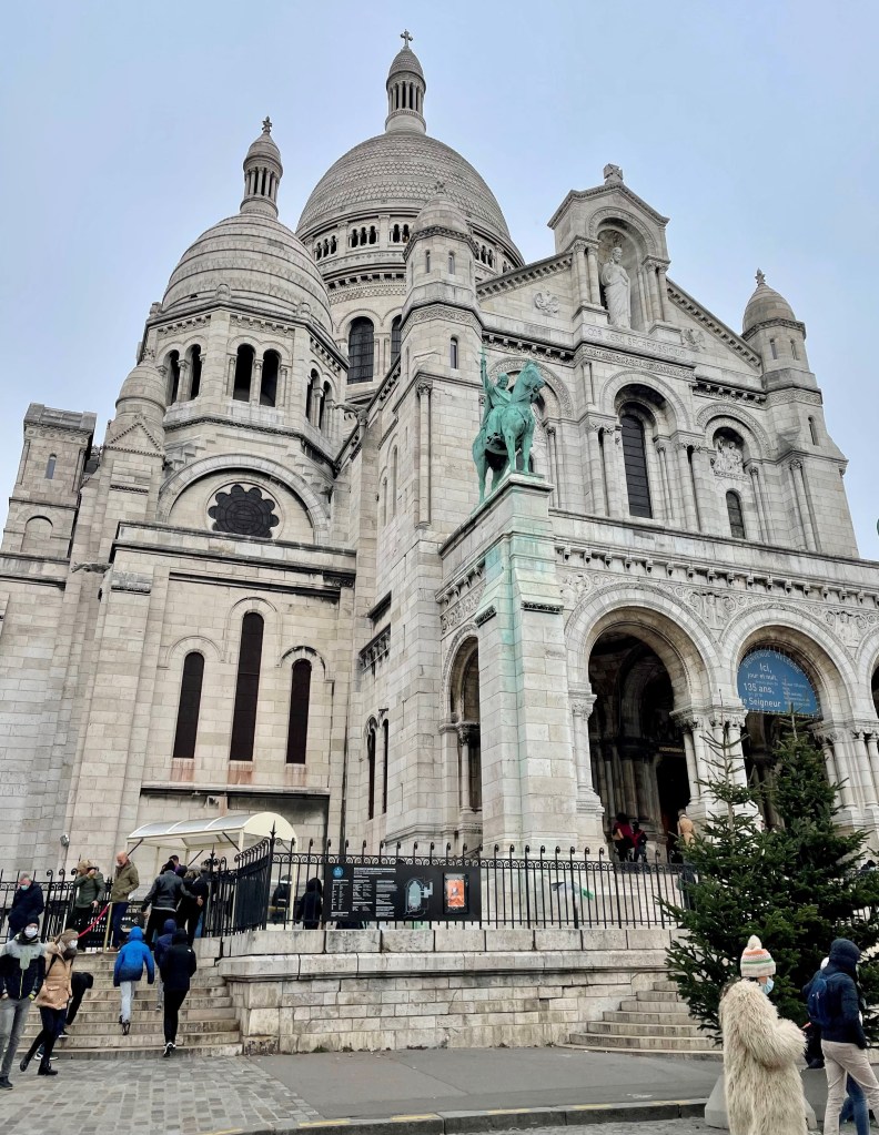 We walked to the Sacre-Coeur…but the girls insisted we pay to take the funicular with the old people and people with small dogs instead of walking up the steps. The views from the top, the love locks on the fence and the sanctity and beauty of the church were appreciated even by my 5 and 6 year old. Inside the Sacre-Coeur we lit a candle for a friend currently battling cancer and also in gratitude for healing of my eye cancer in April 2021.