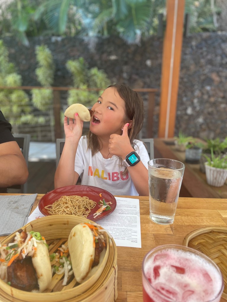 We arrived on a Sunday at 11:46AM and headed right to our 1:15PM reservation at Star Noodle in Lahaina. Star Noodle is consistently excellent Asian food and the girls rate their garlic noodles as the BEST EVER. Don’t miss the steamed pork buns, green papaya and shrimp salad and the local saimin…among other options. I highly recommend booking lunch or dinner a month before your planned visit as it tends to book up fast. It’s on the water, next to the Old Lahaina luau and a phenomenal seafood restaurant I’d also recommend, Mala Ocean Tavern. www.starnoodle.com and www.malatavern.com