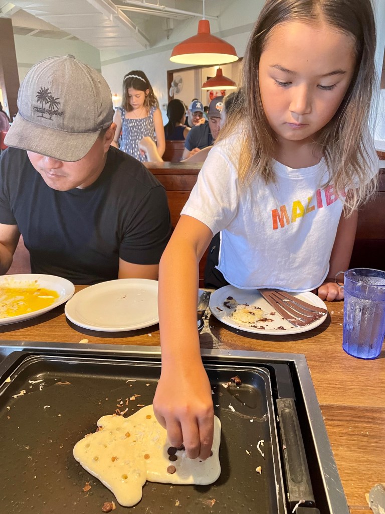 Slappy Cakes: No trip to Maui is complete without the pancake-making ritual at Slappy Cakes in Kaanapali. As the girls grow older, they get more and more creative in their designs. www.slappycakes.com