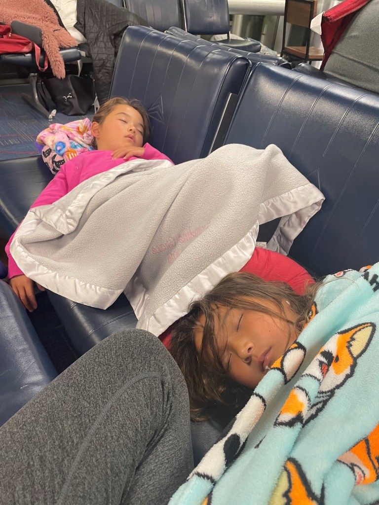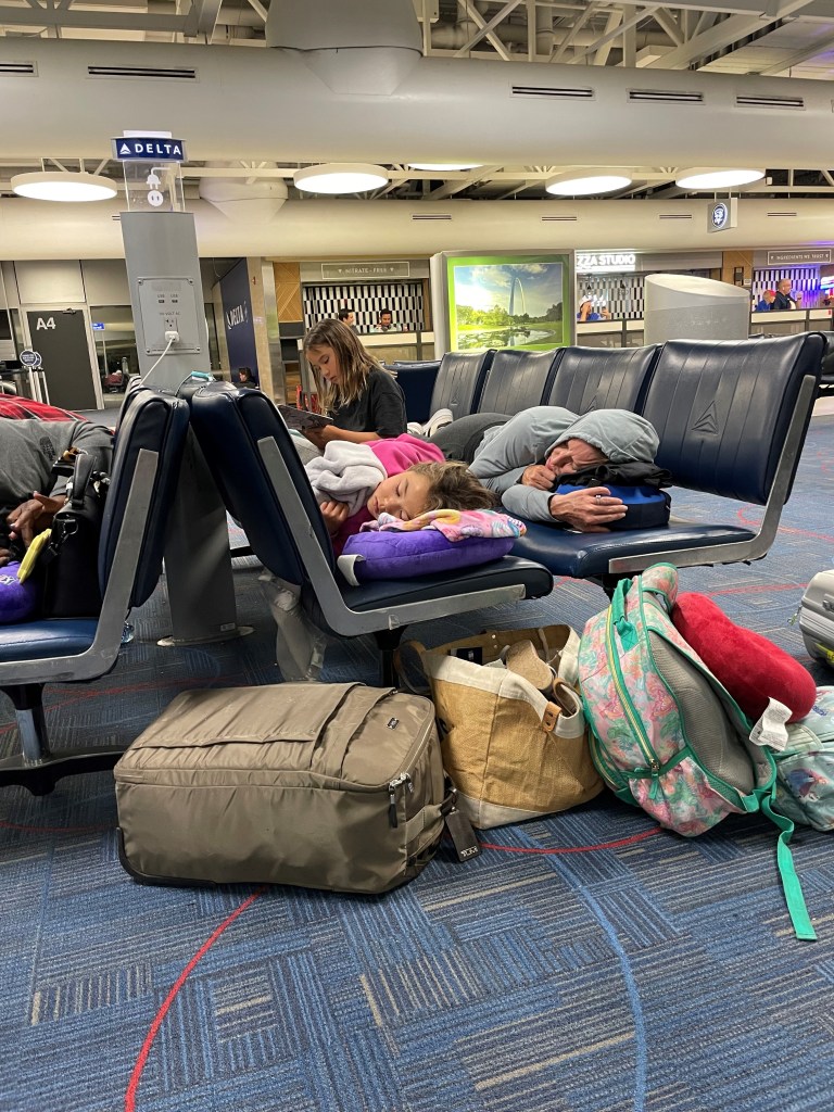 Our 2:20PM flight to Chicago from LAX on United Airlines left on time, but after hovering over the Chicago O’Hare Airport for 2 hours due to thunderstorms, was re-routed to St Louis. We then sat on the tarmack in St Louis waiting to refuel and for clearance to fly back to Chicago. At 12AM, after sitting for 3 hours, our flight was cancelled, the airplane parked and we took shuttles to the airport terminal. 7 flights had been routed to St Louis, no hotel rooms were to be had and we spent the night in the airport, eating dinner from the vending machines. Fun. Calling the United Airlines customer service meant waiting on hold for an hour before I gave up. Trying the United text messaging feature on my United app also meant waiting indefinitely for a “person” to respond. But…to their credit, the girls’ spirit of adventure kicked in and they likened us to contestants on the Amazing Race…figuring out our next step.