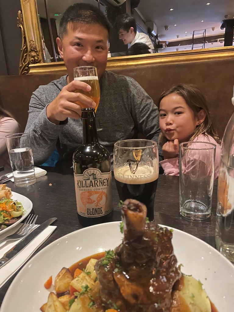 We stopped at An Pointin Stil in Rathcoole about 30 minutes south of Dublin and on the path to our Kilkea Castle lodgings, per John the driver’s recommendation. The night we arrived happened to be the Kerry vs Dublin 2023 All-Ireland Senior Football Final. This is Gaelic football and is a mix between soccer and rugby and it’s a BIG deal. The game had just finished, with Dublin winning, when we arrived and the pub was packed with families in their team jerseys. Such fun to be an observer! The pub has two ways of service: downstairs seating with a self serve buffet line OR upstairs formal seating. The buffet line was long so we chose upstairs. I split the fish dish and it was excellent. They had a traditional kids’ menu with burgers, chicken tenders, etc. Worth a stop if headed in this direction. www.anpointinstil.ie