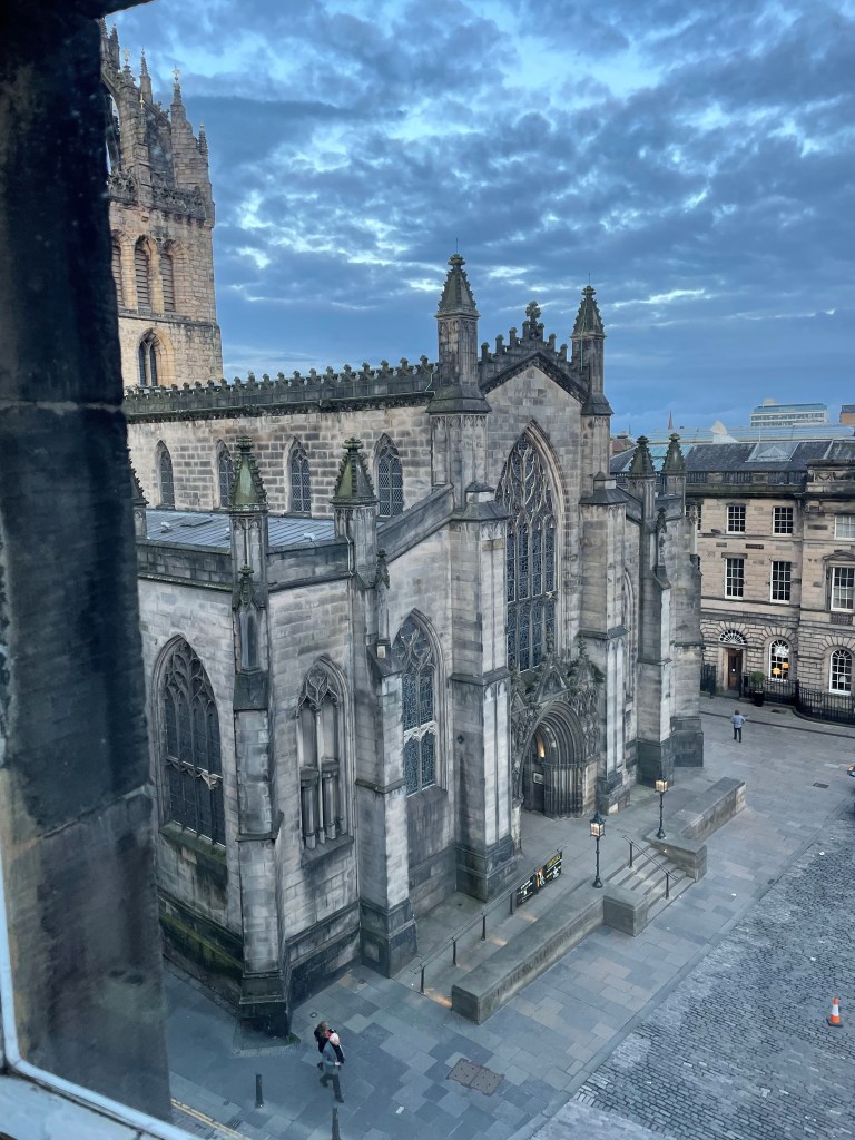 Our 3-bedroom, 2 bathroom flat was located on the 7th floor of an elevator-less townhome on High Street/Royal Mile, across from the Giles Cathedral. GREAT location for activities. TERRIBLE location for, once again, noise. While climbing 4 flights of steep winding stairs carrying our luggage (glad we packed light!) was a challenge, I was grateful to be on the highest floor because it did mitigate some of the noise from the street performers below. www.booking.com