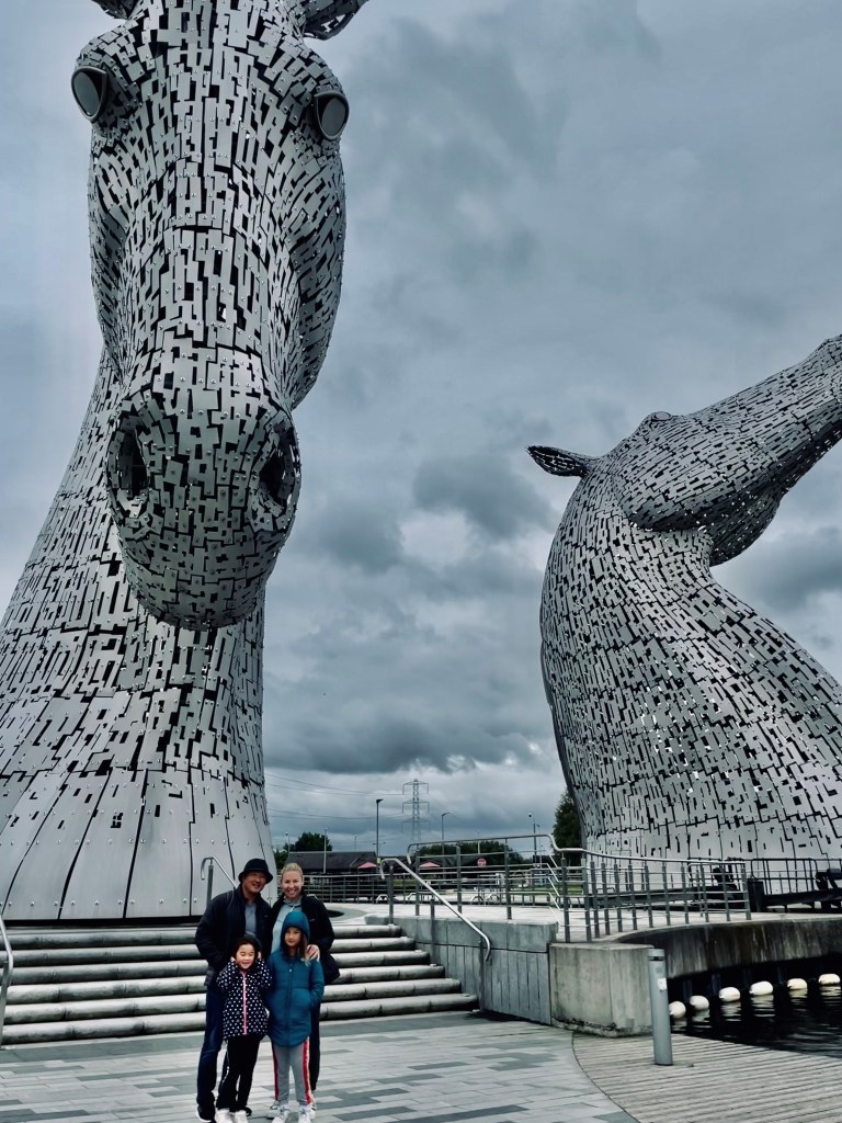 Day 1 in Scotland found us traveling OUT of Edinburgh city proper. We booked the Kelpies, Loch Lomond and Stirling Castle, 9-hours-on-a-bus tour for us all. While the tour guide was entertaining and the sites were worth seeing, this is NOT the tour for a family with kids under 14. Really…it wasn’t a tour for people under 65…70 was the average age of our counterparts I’d bet!