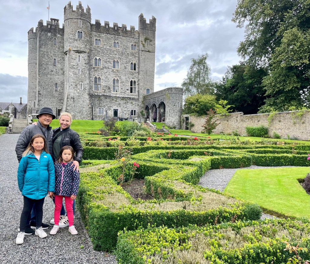 Steve booked an Audi A6 from Hertz at the Dublin Airport to hold our family of 5 plus suitcases and it fit us! Driving in Ireland is an adventure: opposite side of the road and opposite driver’s seat from America. Since Steve arrived the day before us, he had some practice on his own and highly recommends using Google Maps vs a car’s GPS if wifi is available. There are many roundabouts and lots of ways to end up off the highway and onto a tiny back road…which adds more flavor to the drive…and also more time.