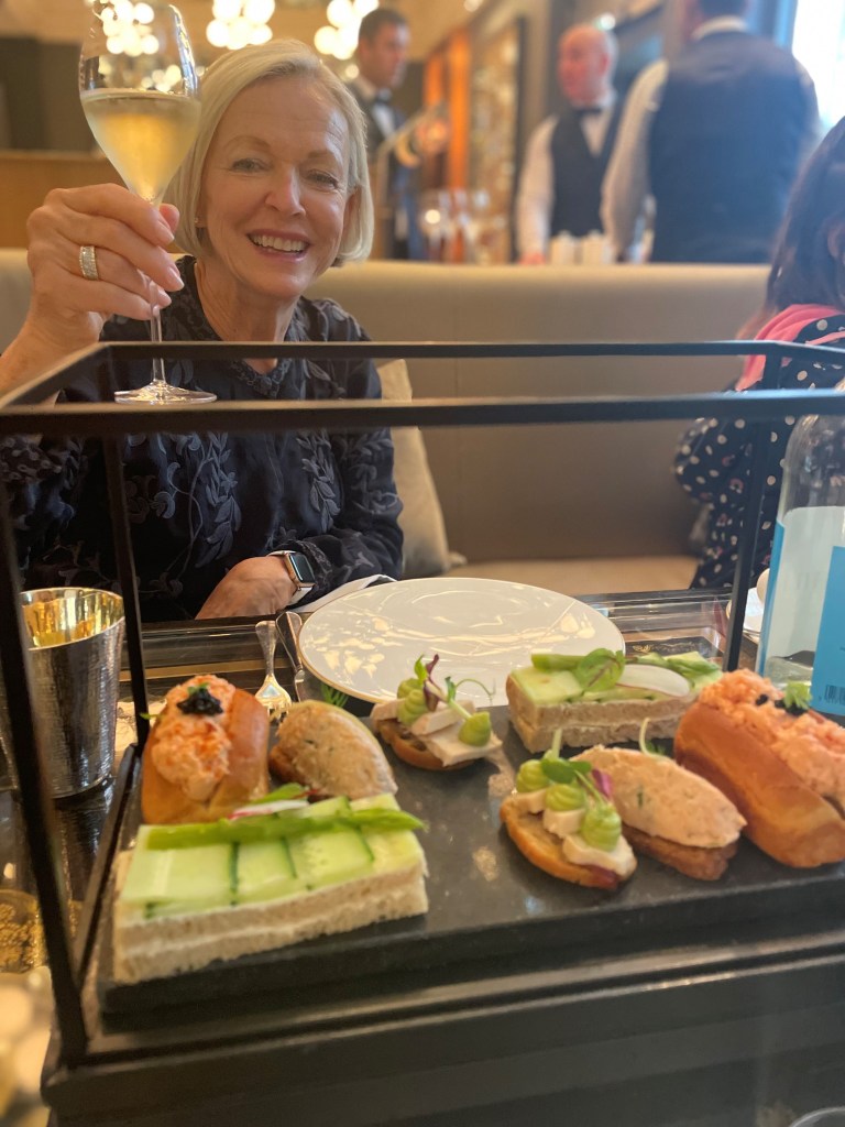 Tea at The Ritz in London is a family tradition started by my mom during my first trip to London with her when I was 12 years old and continued every trip, whether with friends or family, ever since. It was fun to pass this on to our daughters! And they loved this more traditional tea and its sandwiches and pastries more than the artsy Rosewood tea. Their favorite was the cucumber sandwich…and I think the waiter probably served us 8 more in addition to the one-each they initially received. Great service!!! There were also several decaffeinated teas to choose from versus just 2 at the Rosewood. We left STUFFED. The adults added a glass of champagne to our tea, then ordered another bottle… www.theritzlondon.com