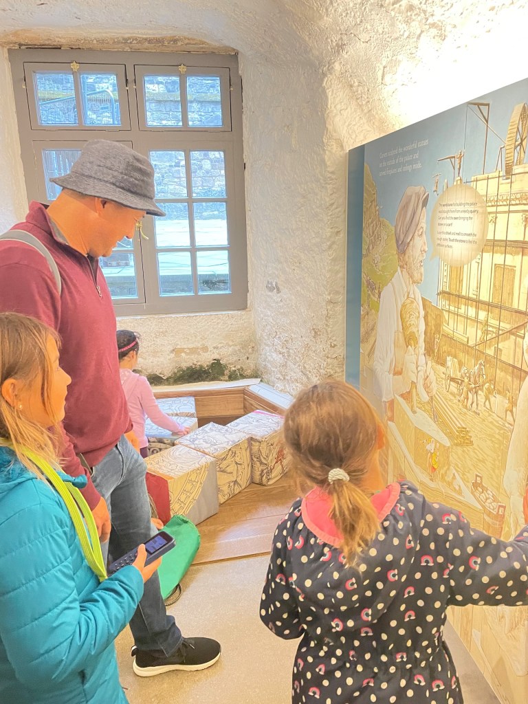 This is where the British monarchy stay when in Edinburgh and there are many rooms open to the public. There is an option to choose Family Tour on the audio guide which gave the girls “fun facts” geared to kids. They thoroughly enjoyed the decorated rooms and stories in this palace. Plan to spend an hour here. Next to Holyrood, a short 15 min walk away is the Peak. We didn’t do the walk to the top, but it’s about 30 minutes, I’m told, and worth it; steady climb on a smooth path. www.rct.uk