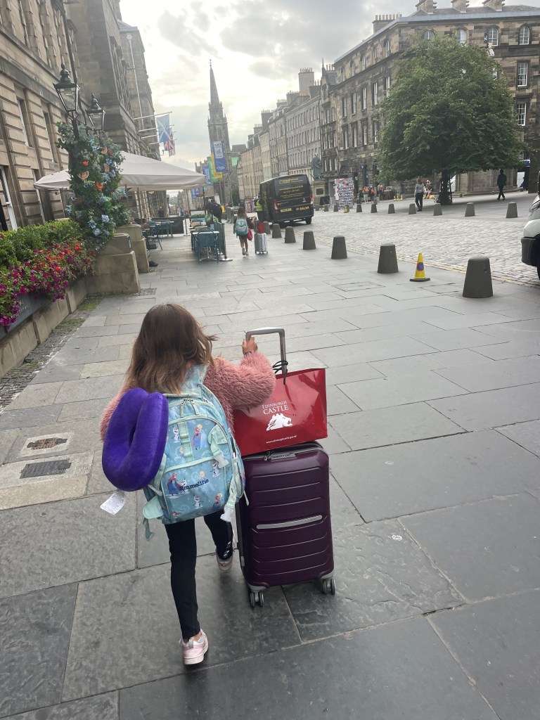 After 3 days in Southern Ireland, we flew Aer Lingus at 6:30PM a short hour to Edinburgh, Scotland. I booked the flight online and “splurged” for the Plus seating. The tickets were still only $572 total for the 5 of us. Upon arrival, we hopped in a large black taxi and headed to our flat rented through Booking.com in the Old Town of Edinburgh. UK taxis are the best for families, by the way! They typically hold 6 people comfortably and have room for strollers, luggage or wheelchairs as needed.