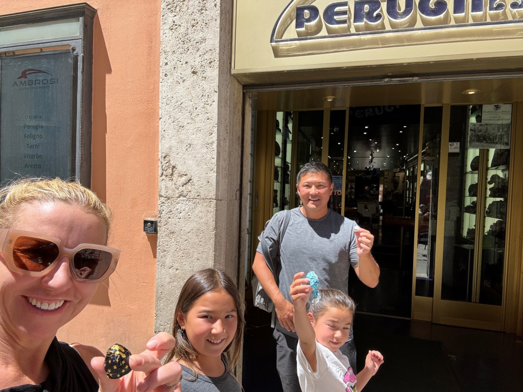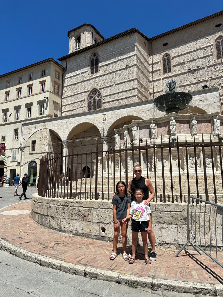 I pre-booked a 30 minute train ride to the medieval city of Perugia in Umbria and we explored that town on foot and using Perugia’s MiniMetro called the Fontivegge. This little train was a huge highlight for the girls and took us from near the train station to the city center. The town is known as “City of Chocolate” for the Baci Perugina. We didn’t tour the Casa del Cioccolato. You have to book in advance and it’s outside the city. www.perugina.com