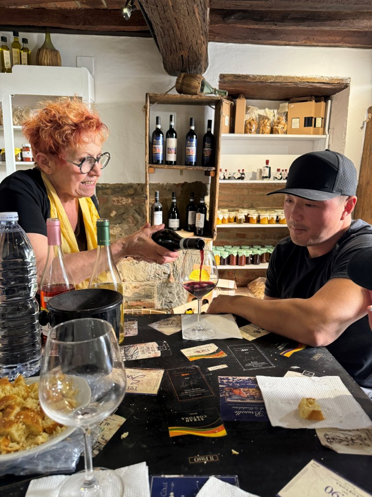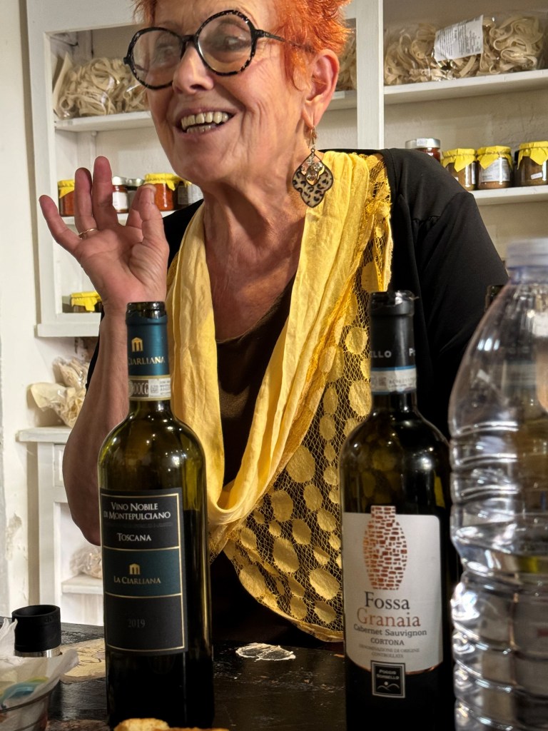 The wine tasting with Cortona’s “orange haired wine woman,” as described by friends who’d visited the town a month prior to us, was something we had to experience. And she was funny, enthusiastic, kind and kid-friendly. I’d estimate we tried 14 different wines…but at some point along the journey, I lost track. The girls devoured 2 plates of her cheese bread while we enjoyed the animated stories of her life and the origins of the wine we tasted.