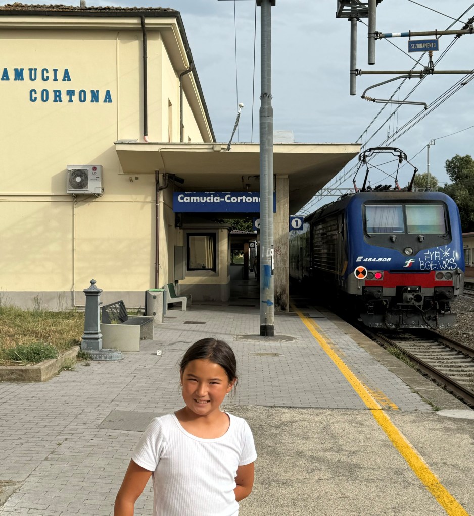 Sadly, after 3 ½ hours of eating and making Italian food in Trastevere, we had to leave Rome…we cabbed to the sketchy luggage place, retrieved our bags and got to Termini in time to grab a quick macchiato. I had booked us in Premium class using Omio for $195 total. Premium means you pre book seating. We had a table in between us and the girls did schoolwork, colored and read during the 2 hour direct trip to Florence. We then had to jump on another train (not as easy to find, but people were helpful at the station) to Cortona. The local train took 1 hour to arrive in Cortona. Because I needed a 3-ish departure time from Rome, we didn’t go the most efficient route to our destination! www.omio.com