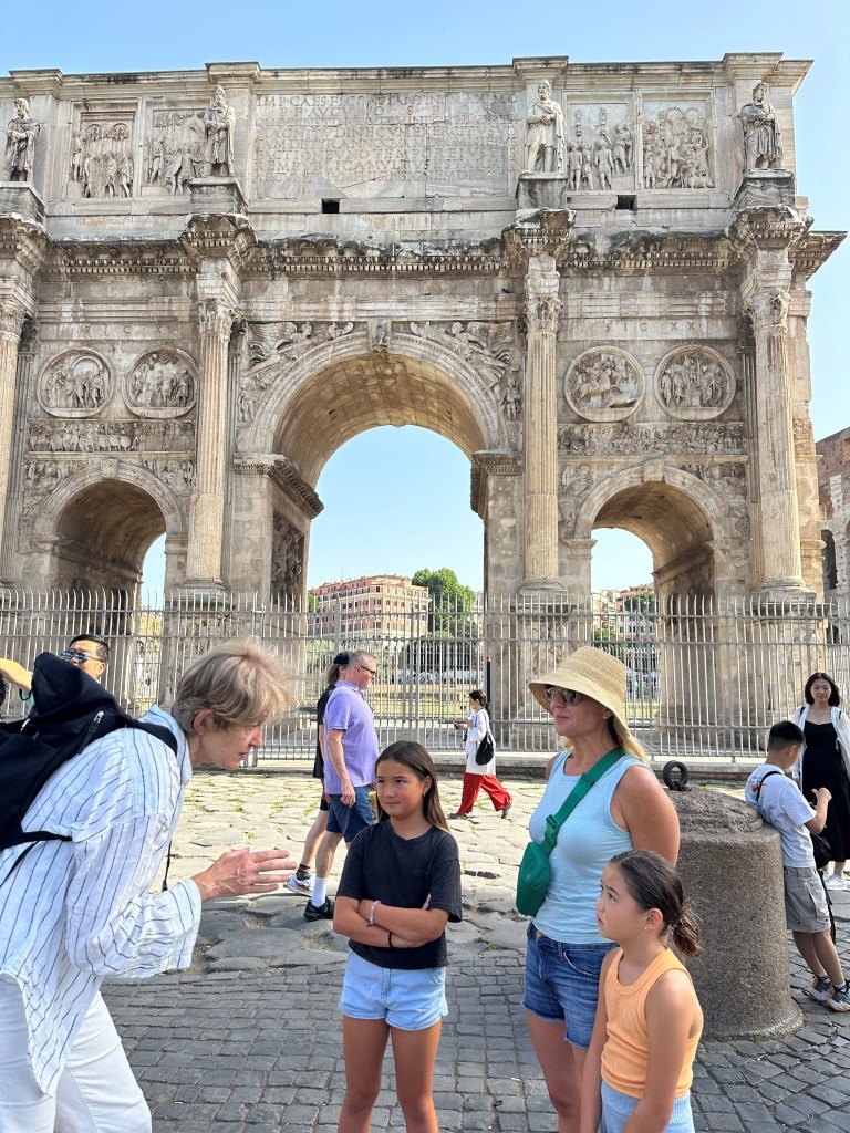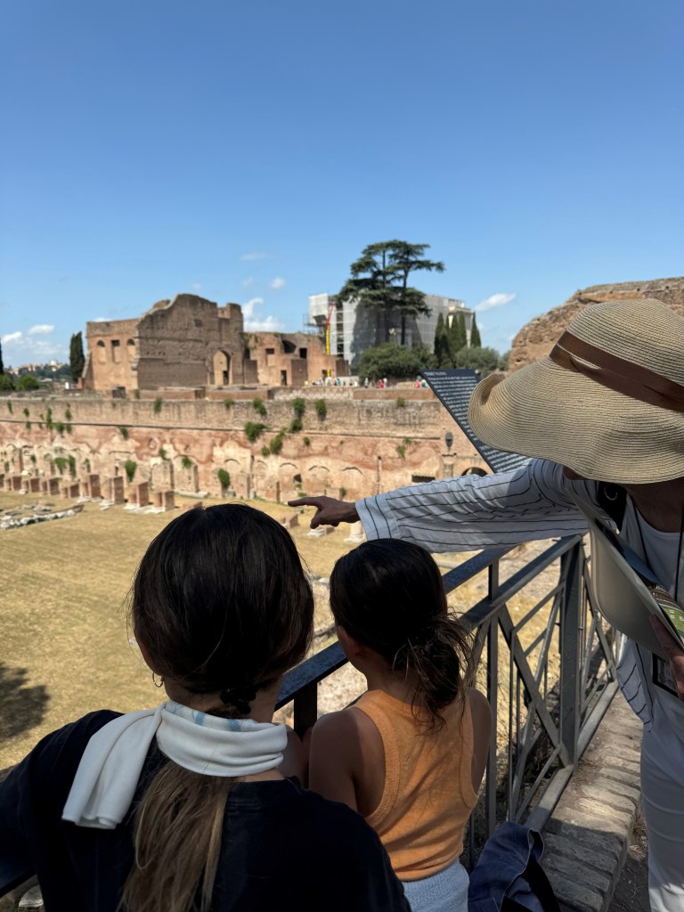 Due to the heat, we cabbed 15 minutes to the Colosseum for our Rome Private Guides 3 hour Colosseum and Ancient Rome (Palatine Hill and Forum) private tour geared to kids, starting at 9:30AM. Our tour was 650 euro for our family and I believe it was worth it…though we didn’t get to go underground to see where the animals were held (supposed to be cool). Our guide spoke perfect English, was full of “fun facts” interesting to adults and kids AND she was very conscious of the heat and would lead us to shady spots to explain the history of Palatine Hill, Rome’s rulers and the gladiators. The group also has private tours of the Vatican and areas of Florence as well. I highly recommend them!  www.romeprivateguides.com