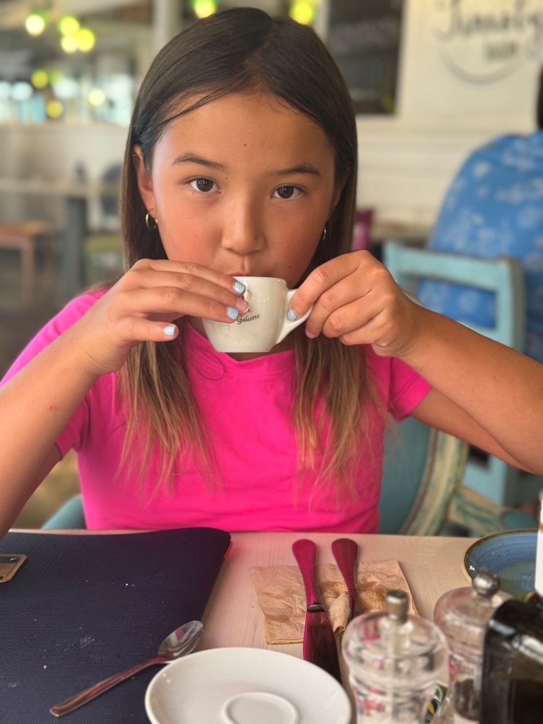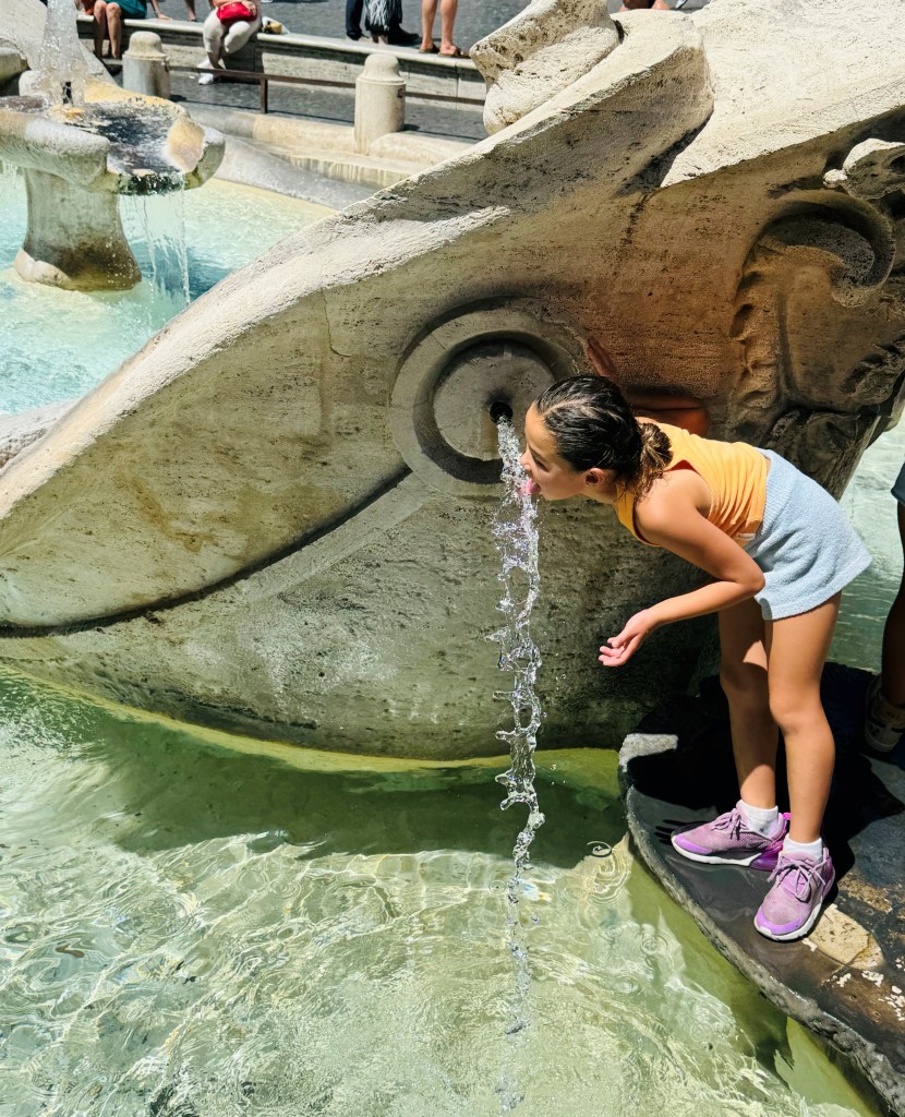 I shared a room with 9 year old, Charlotte, who was awake about 8AM ready for adventure. Steve and Emmeline, the 8 year old, in the room next door, were still asleep. Charlotte and I set out on a quest to find eggs for breakfast (Italians typically just eat breakfast pasteries) in our neighborhood and found Rosemary Terra e Sapori on Via Modena. It’s an adorable café where Charlotte had her first decaf espresso. She did not love it. I had the delicious international breakfast and we got to see the American Embassy, the pretty Fountain of Moses near the St Regis Rome hotel and the Piazza de la Repubblica on our 12 minute walk. www.rosemary.bio