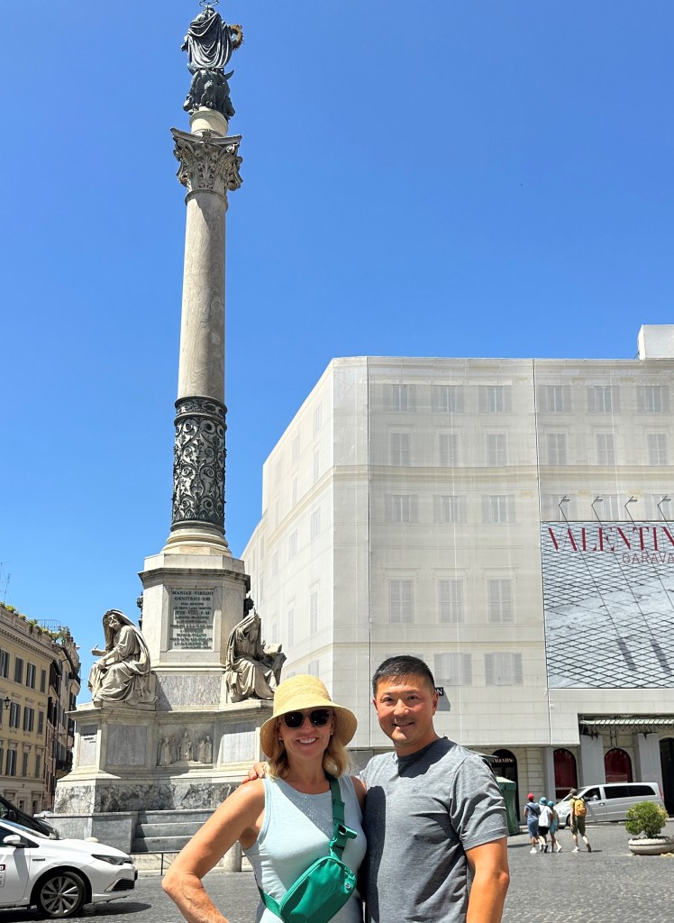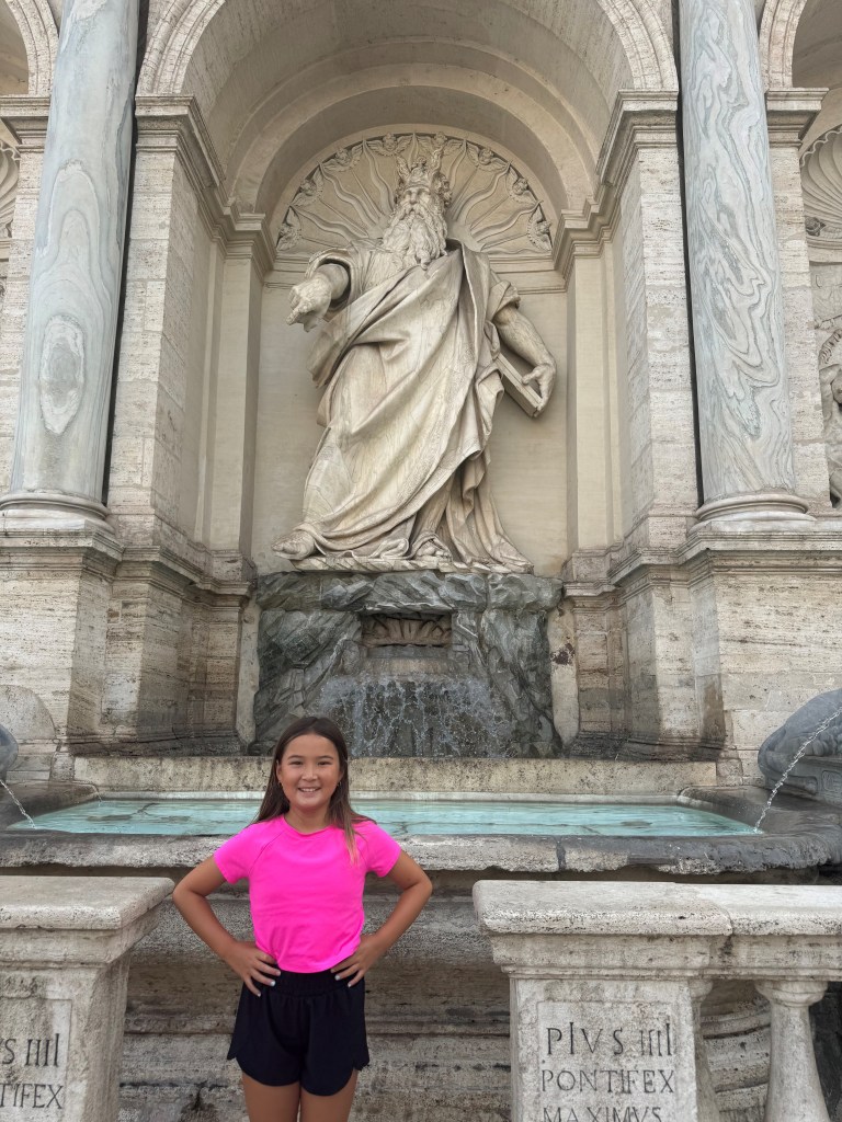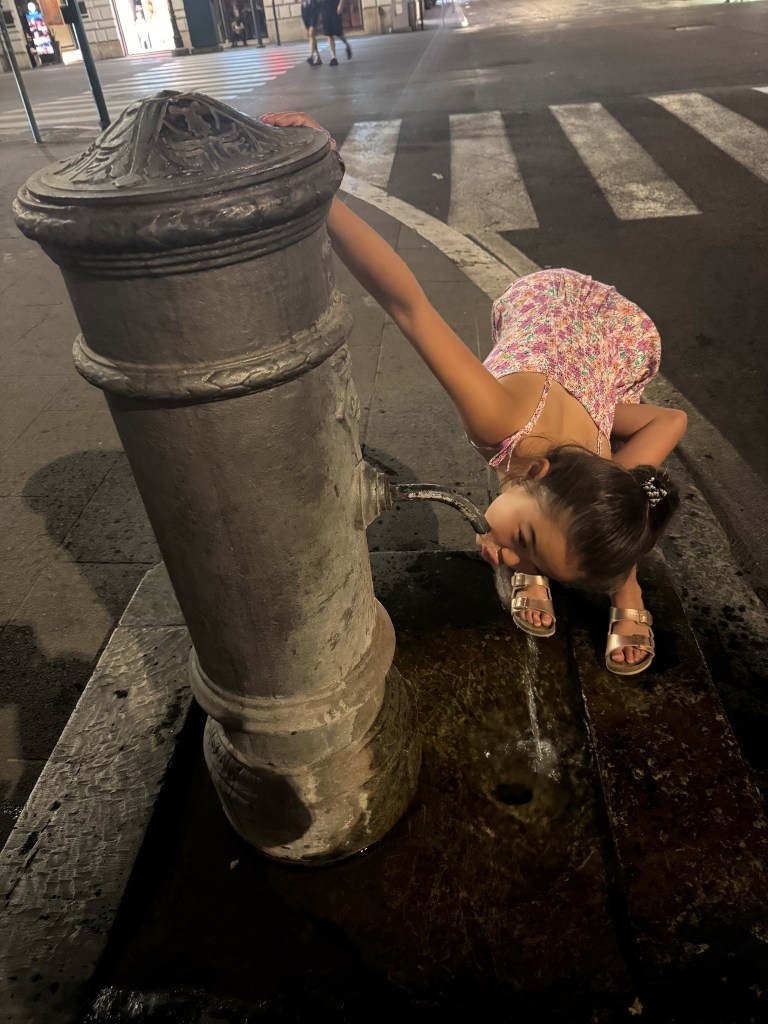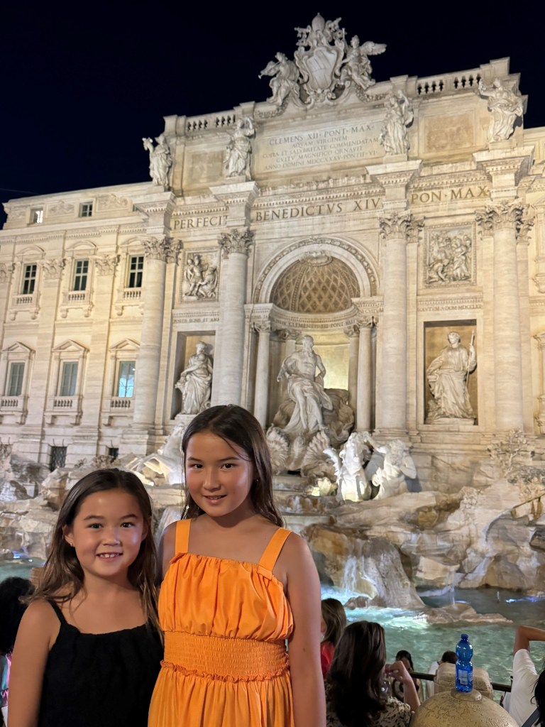 We walked north, through the Piazza Venezia and admired the Monument to Victor Emmanuel II (aka “the wedding cake”) and made our way to the Via del Corso. Travel tip: Doria Pamphili museum is nearby and it’s lovely, but we didn’t stop because of our daughters’ ages and attention spans.  Eventually, after stopping again for gelato AND at Louis Vuitton, Burberry and Prada, we arrived at the Spanish Steps. We climbed the steps, took pictures at the top…climbed back down, took pictures at the bottom, drank water from the fountain in the boat sculpture (it’s safe) and headed back to the hotel to freshen up for dinner.